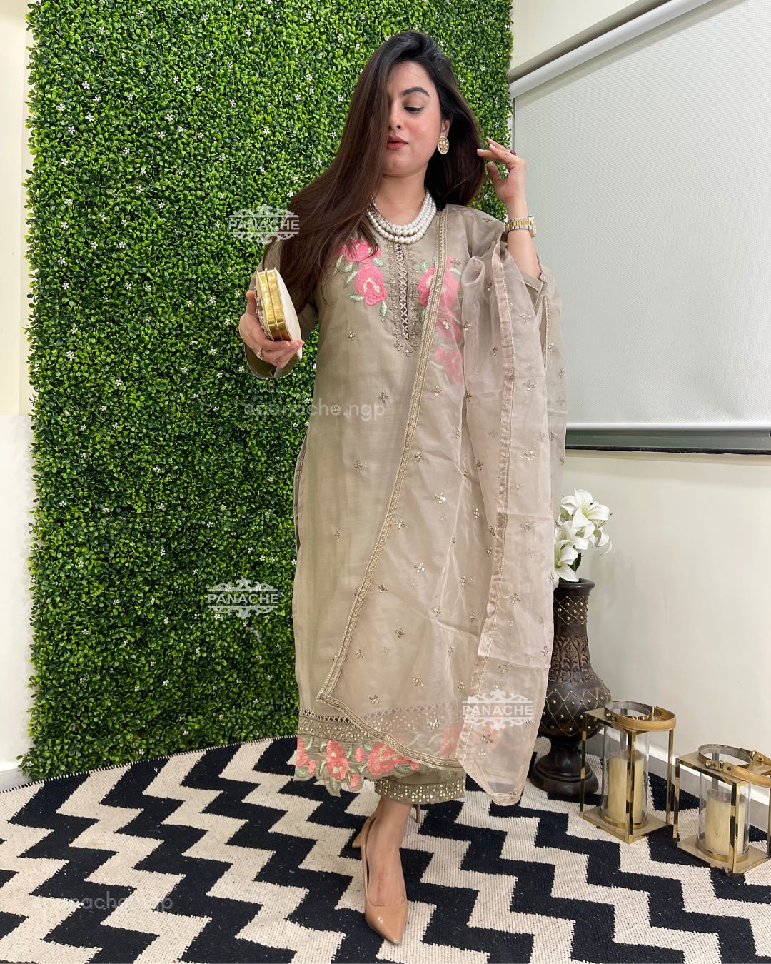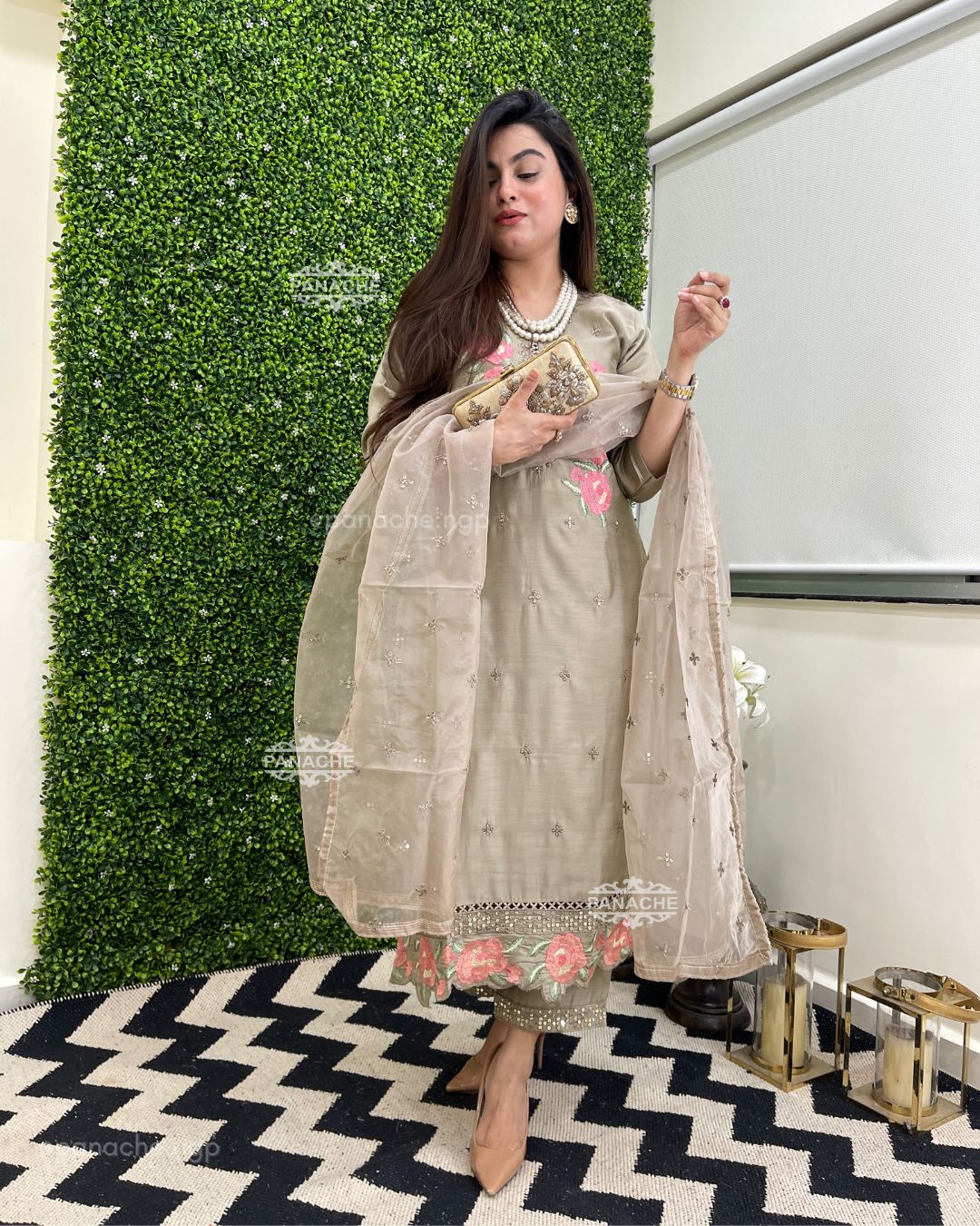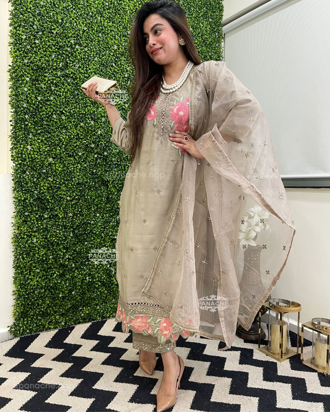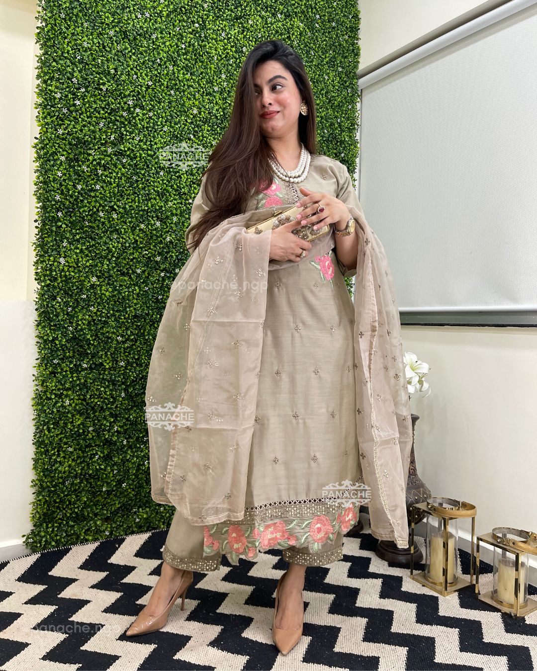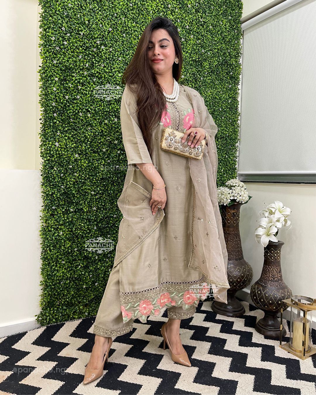 🟣 Beautiful floral colourful embroidery on kurta with cutwork on daman and sequin dupatta to give a pretty look