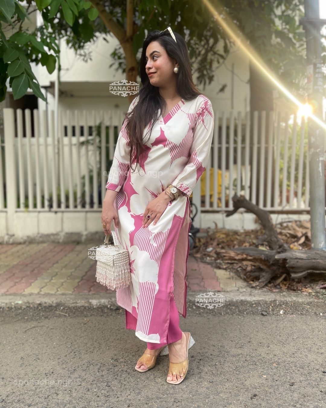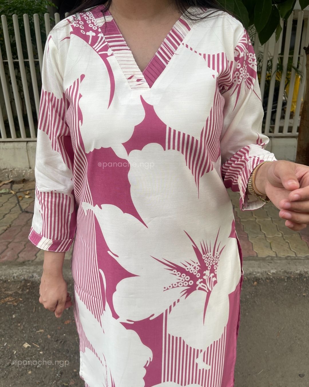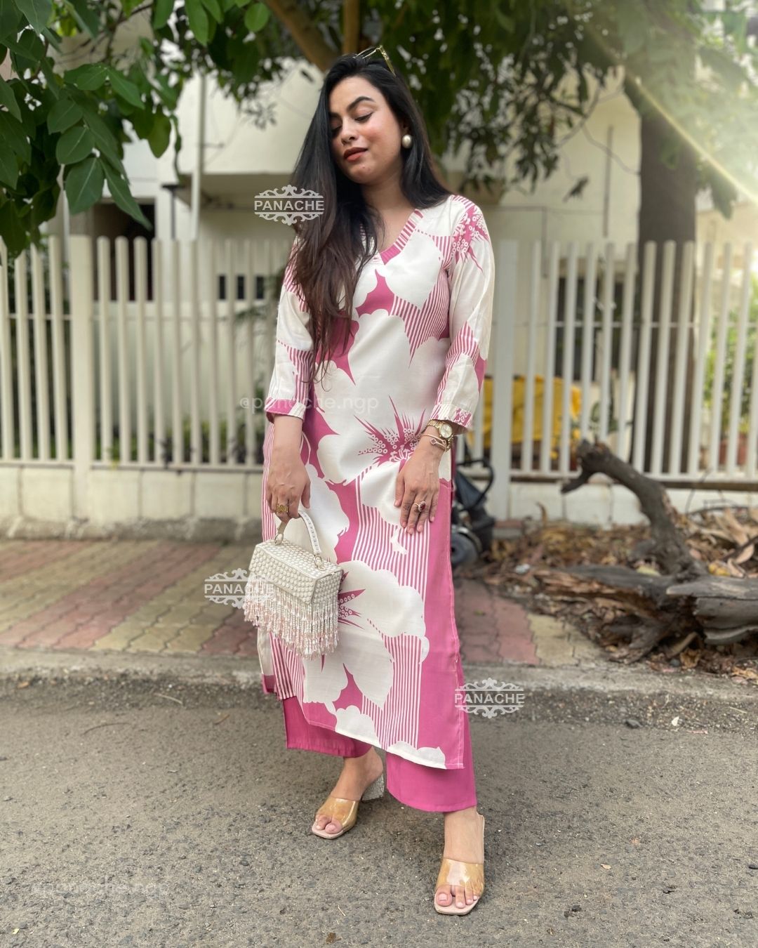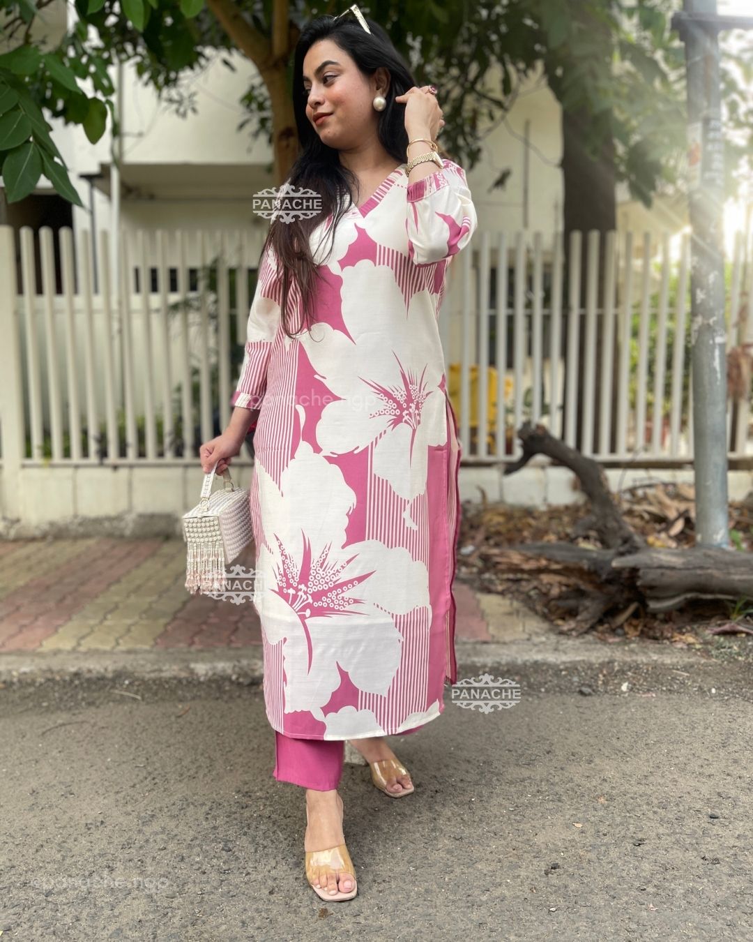 🟣 Subtle print in kurta and plain pants