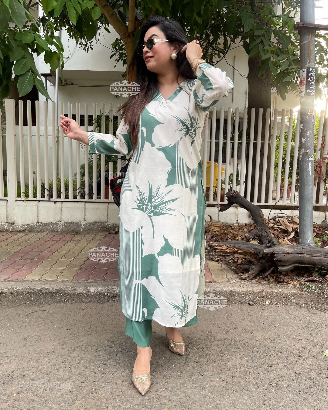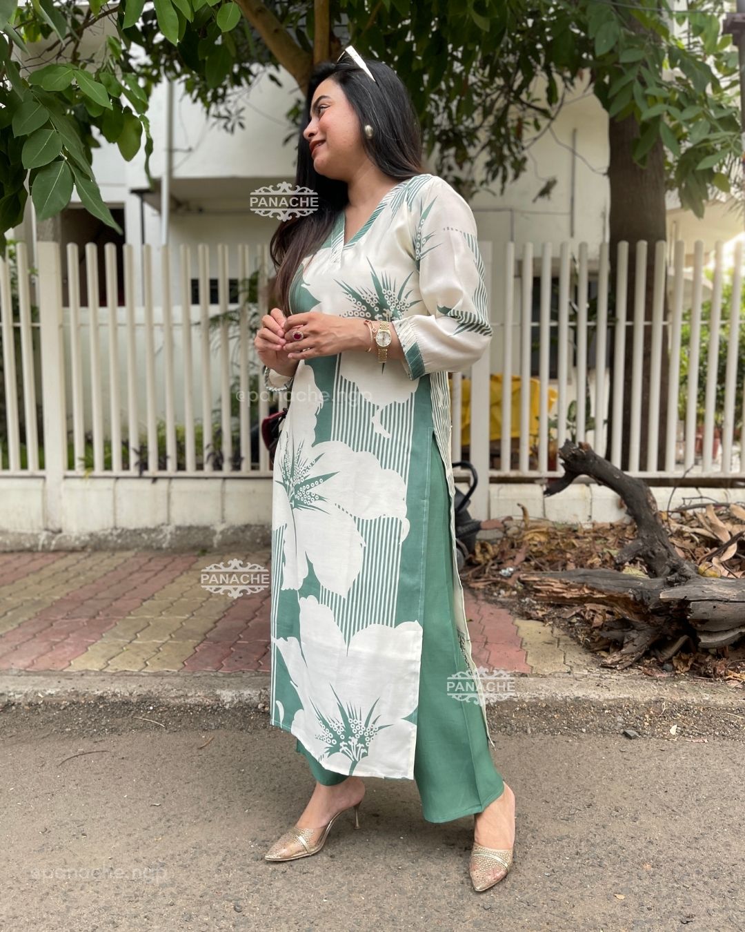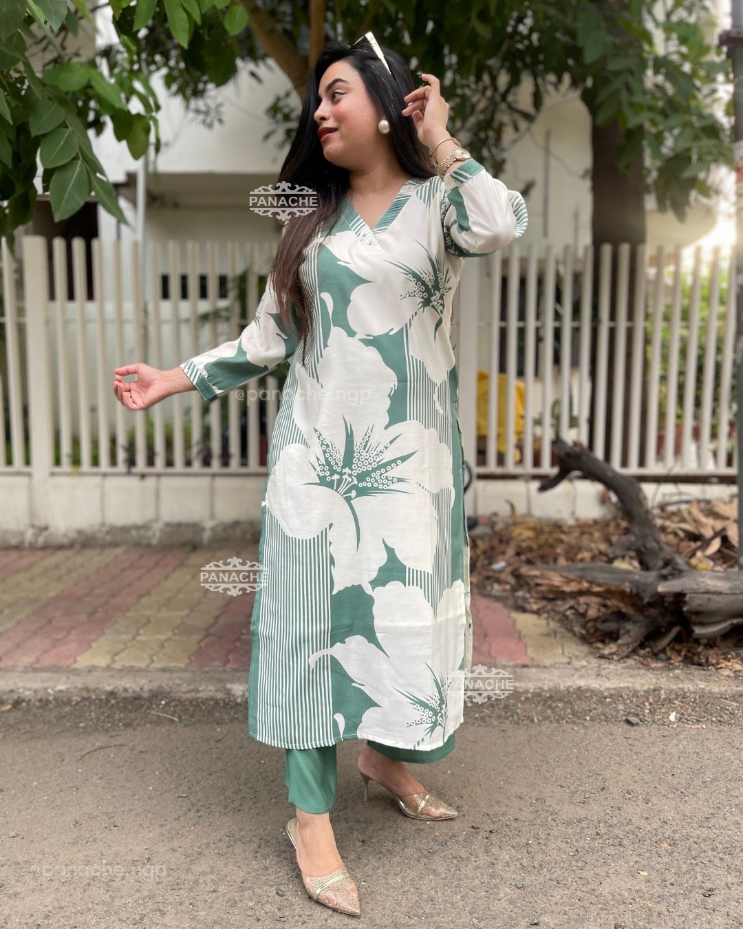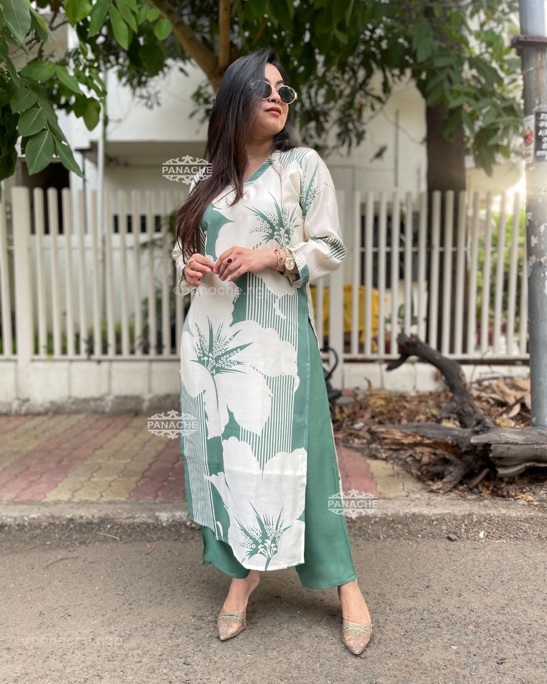 🟣 Subtle print in kurta and plain pants