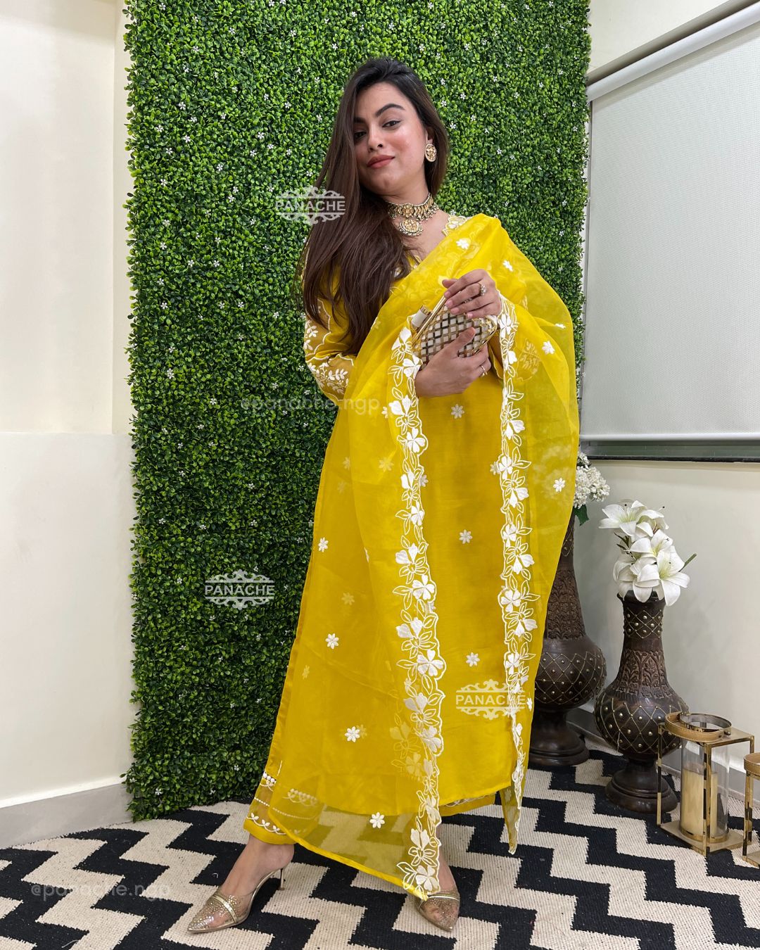 🟣 Cutwork neckline of kurta and cutwork of dupatta with small buttas all over kurta and dupatta, beautiful cutwork embellished with embroidery on sleeves